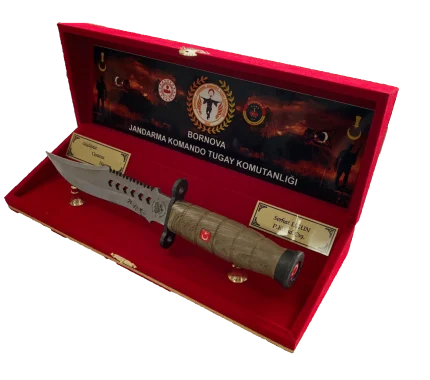 Kadife Kutulu Ceviz Bıçaklı Büyük Plaket   Askeri Hediyelik Özel Kutulu Uzman Jandarma Komando Bıçağı Logo veya resim baskılı isim